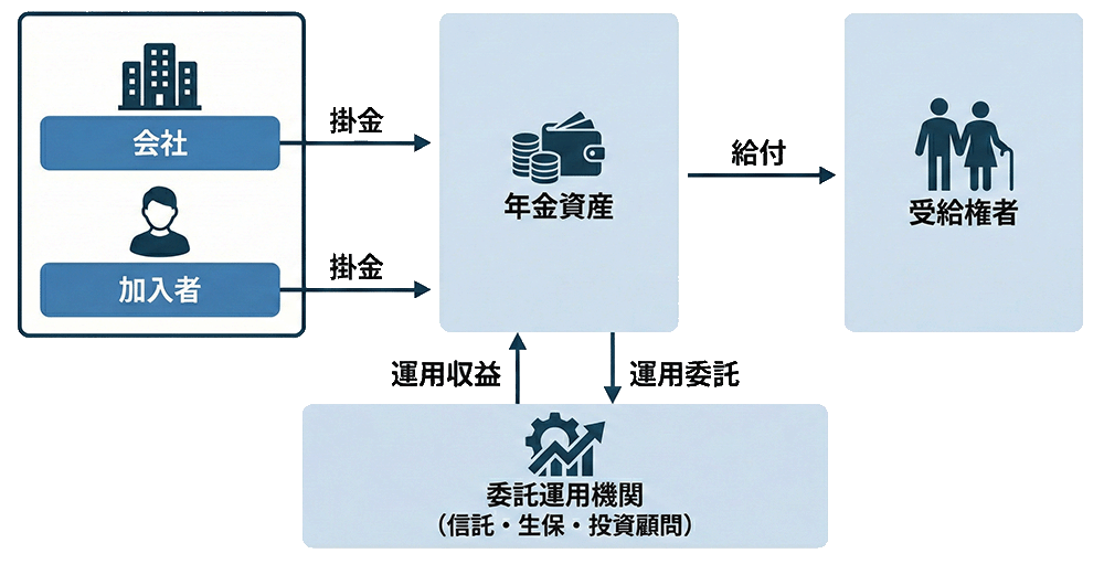 「年金資産」が「会社」の枠の外に独立して描かれているのは、非常に重要な意味を持っています。